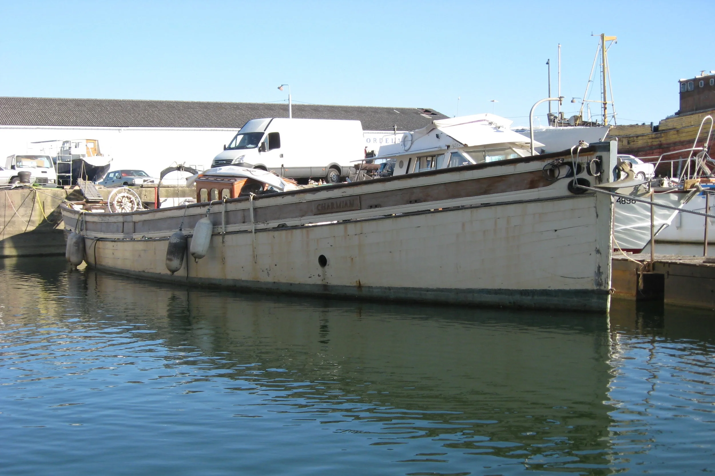 Charmian was built in Brixham by J. W. & A. Upham and was launched on a Thursday in March 1933. She was built to order for Mr. Wilfred E. Nicholson, of Torquay. She is a very graceful representation of the ‘mule’ type Brixham Sailing Trawler. The ‘mule’ class of trawler were all based on the same lines as there larger cousins but were all around the 40 registered tonnage range. The main difference in Charmian compared to the commercially run fishing trawlers is the use of materials for her build. Charmian was built with Naval Brass fastenings with her hull planking below the waterline being Oak and Larch above.